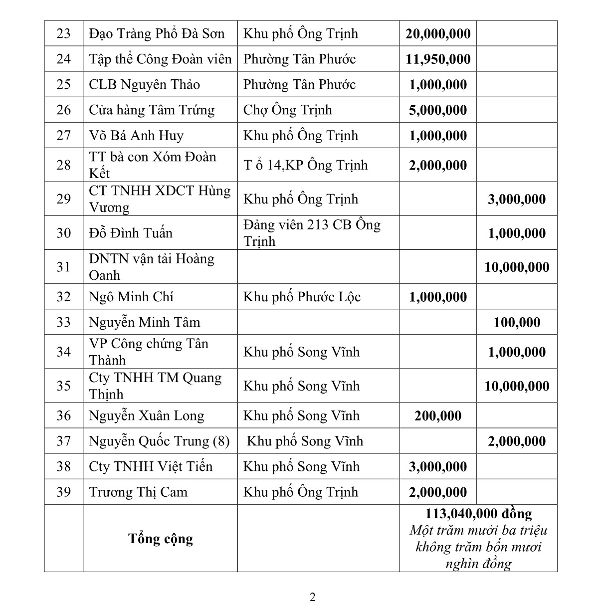 Uỷ ban Mặt trận Tổ quốc Việt Nam phường Tân Phước cập nhật Danh sách mạnh thường quân ủng hộ đồng bào miền bắc khắc hậu hậu quả cơn bão số 3 (Đến 16 giờ ngày 17/9/2024). Số liệu nhận ủng hộ vẫn đang tiếp tục được cập nhật…