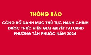UBND phường Tân Phước thông báo công bố Danh mục Thủ tục hành chính được...
