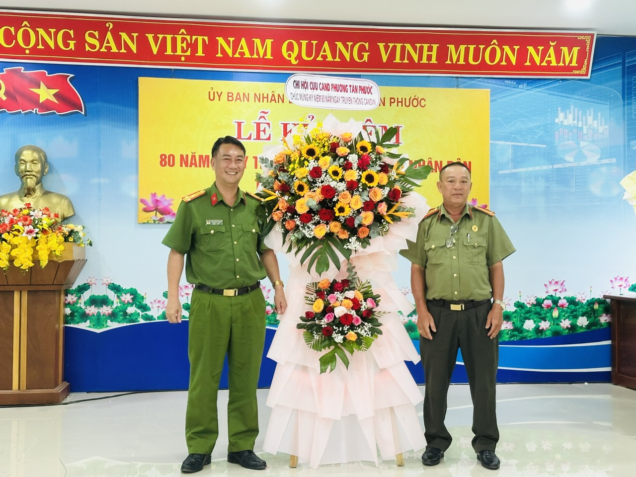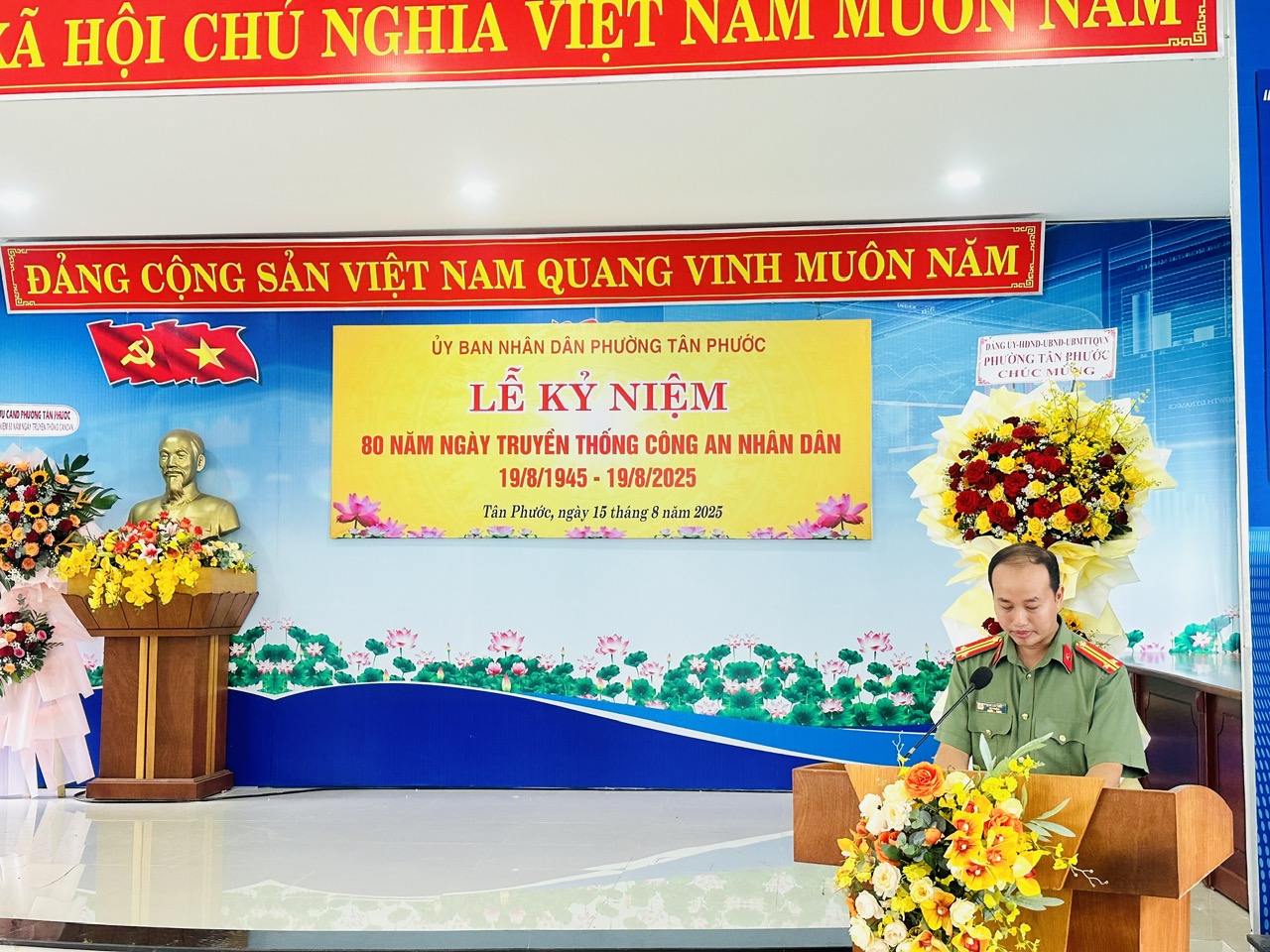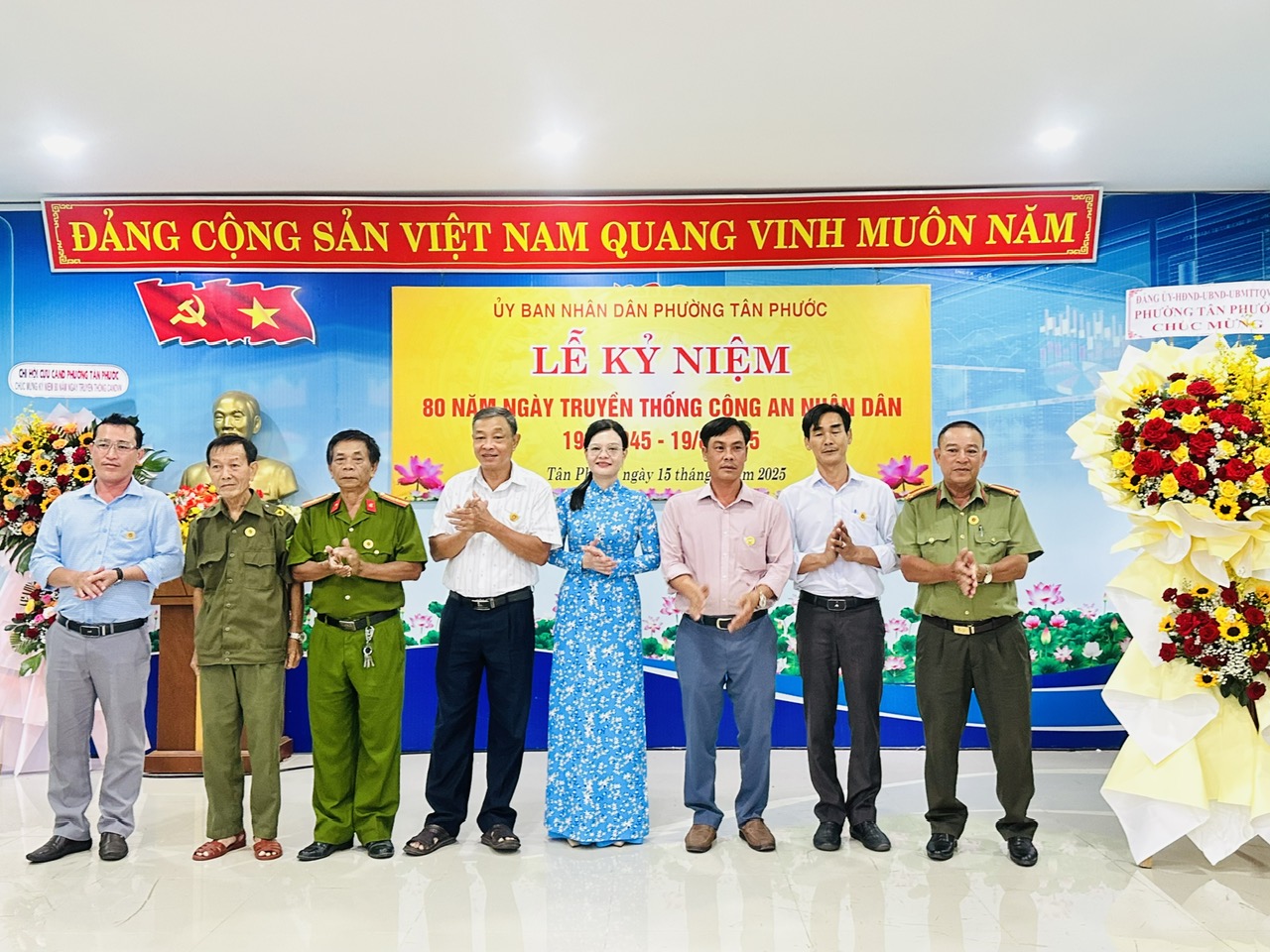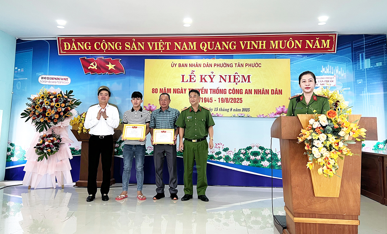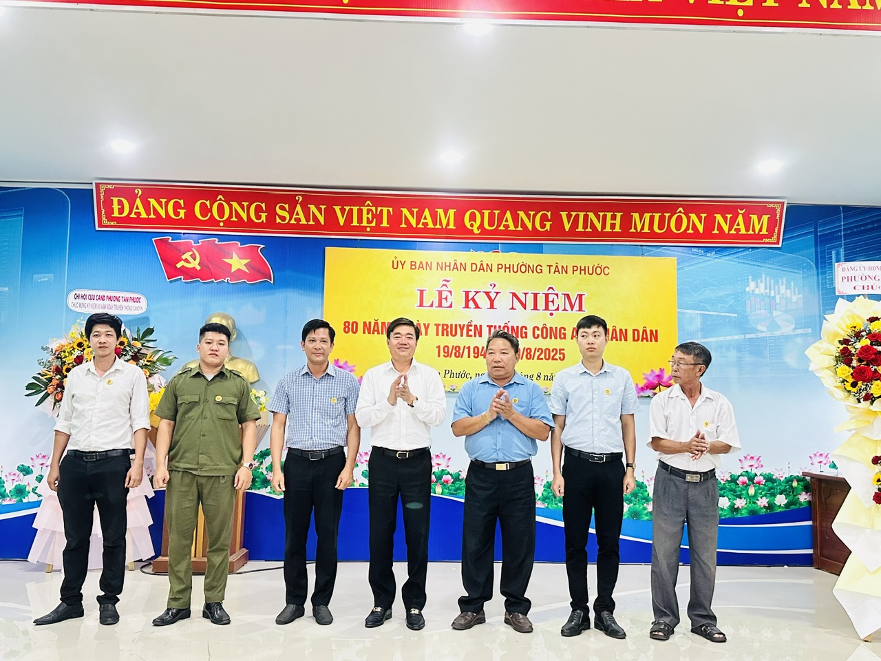Lễ kỷ niệm 80 năm Ngày truyền thống Công an nhân dân không chỉ là dịp tri ân các thế hệ cán bộ, chiến sĩ mà còn là nguồn động viên to lớn, tiếp thêm nhiệt huyết cho lực lượng Công an phường Tân Phước trong hành trình mới – hành trình giữ vững bình yên, vì một phường Tân Phước an toàn, văn minh và phát triển.