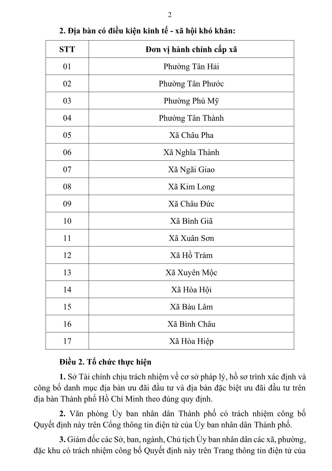 1. Các khu vực được hưởng ưu đãi đầu tư: trong đó có phường Tân Phước, thành phố Hồ Chí Minh.