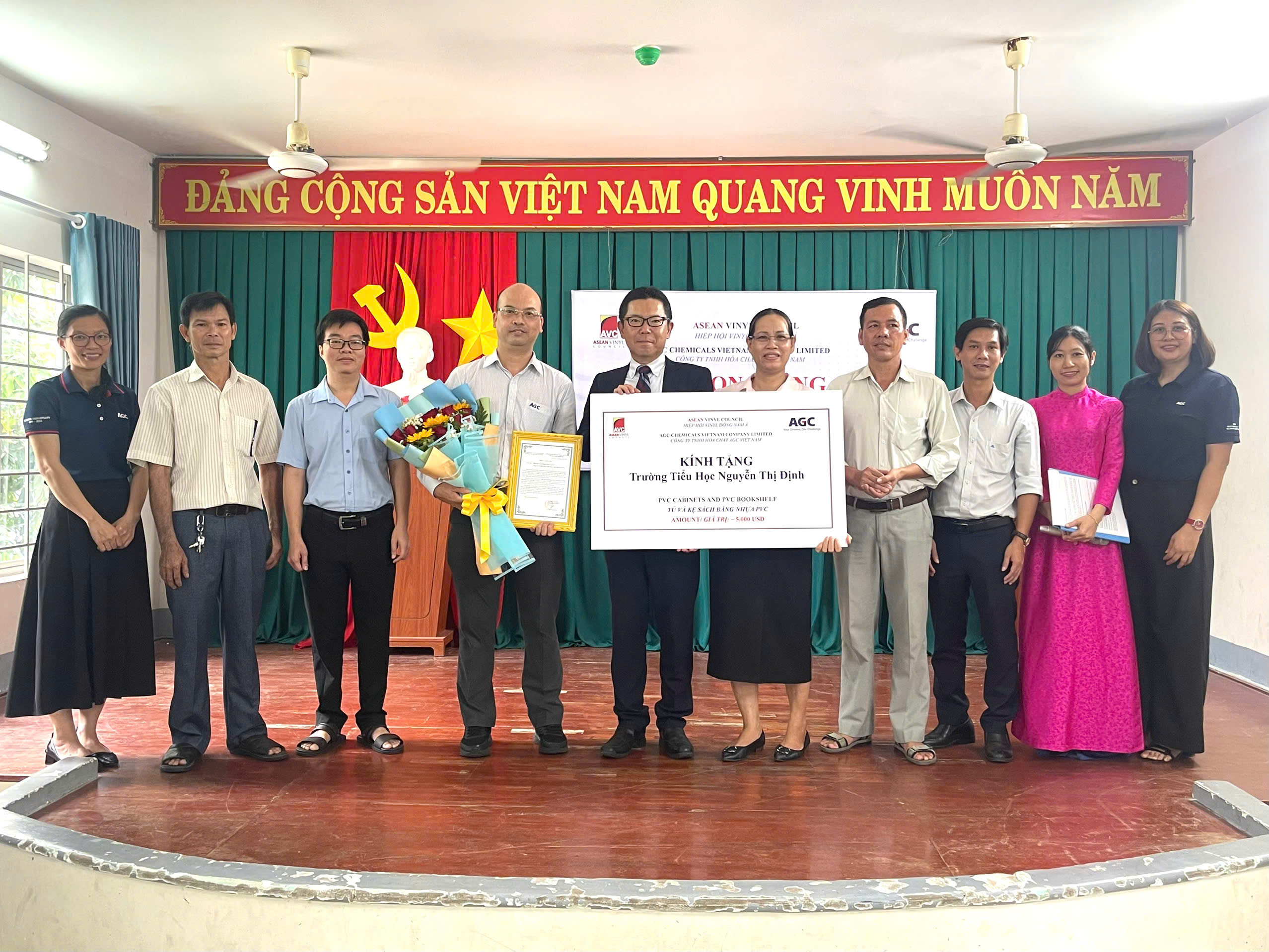 Trong khuôn khổ chương trình, Công ty TNHH Hóa Chất AGC đã thay mặt Hiệp hội Nhựa Đông Nam Á trao tặng các phần quà gồm: 26 tủ nhựa PVC, 07 kệ sách PVC, 23 thùng sữa, 140 gói bánh – kẹo, cùng nhiều đầu sách, truyện bổ ích dành cho thầy cô và học sinh. Tổng giá trị các phần quà lên đến 5.000 USD.