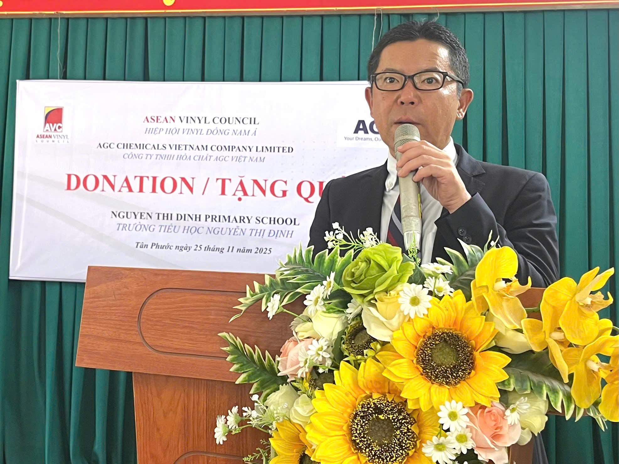 Sáng ngày 25/11/2025, Công ty TNHH Hóa Chất AGC phối hợp cùng Hiệp hội Nhựa Đông Nam Á tổ chức chương trình trao tặng quà và trồng cây xanh tại Trường Tiểu học Nguyễn Thị Định, phường Tân Phước, TP. Hồ Chí Minh.