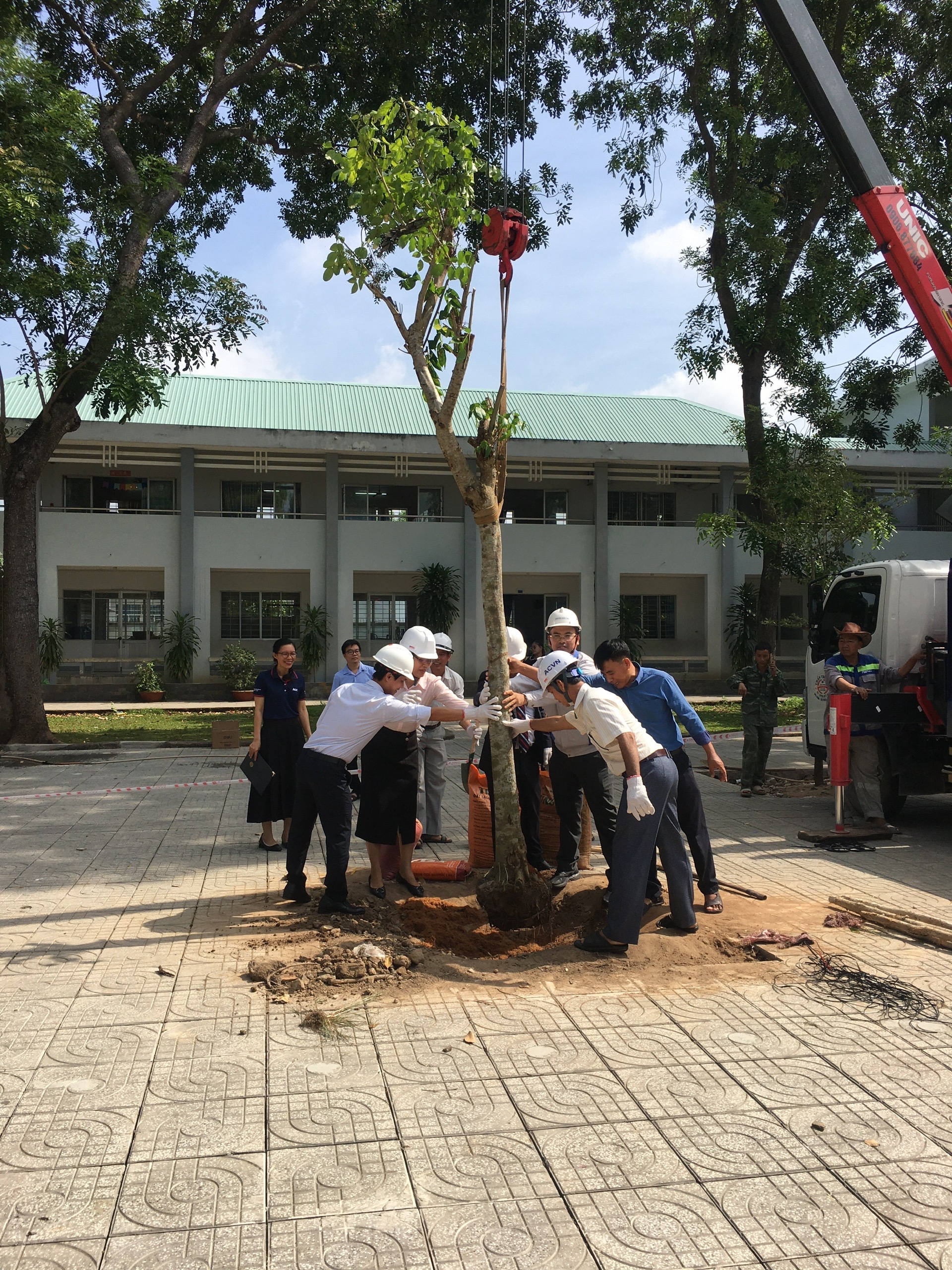 Bên cạnh đó, công ty còn trao tặng và trực tiếp trồng 06 cây giáng hương trong khuôn viên trường với tổng giá trị 26 triệu đồng, góp phần tạo thêm mảng xanh và không gian học tập trong lành cho các em học sinh.