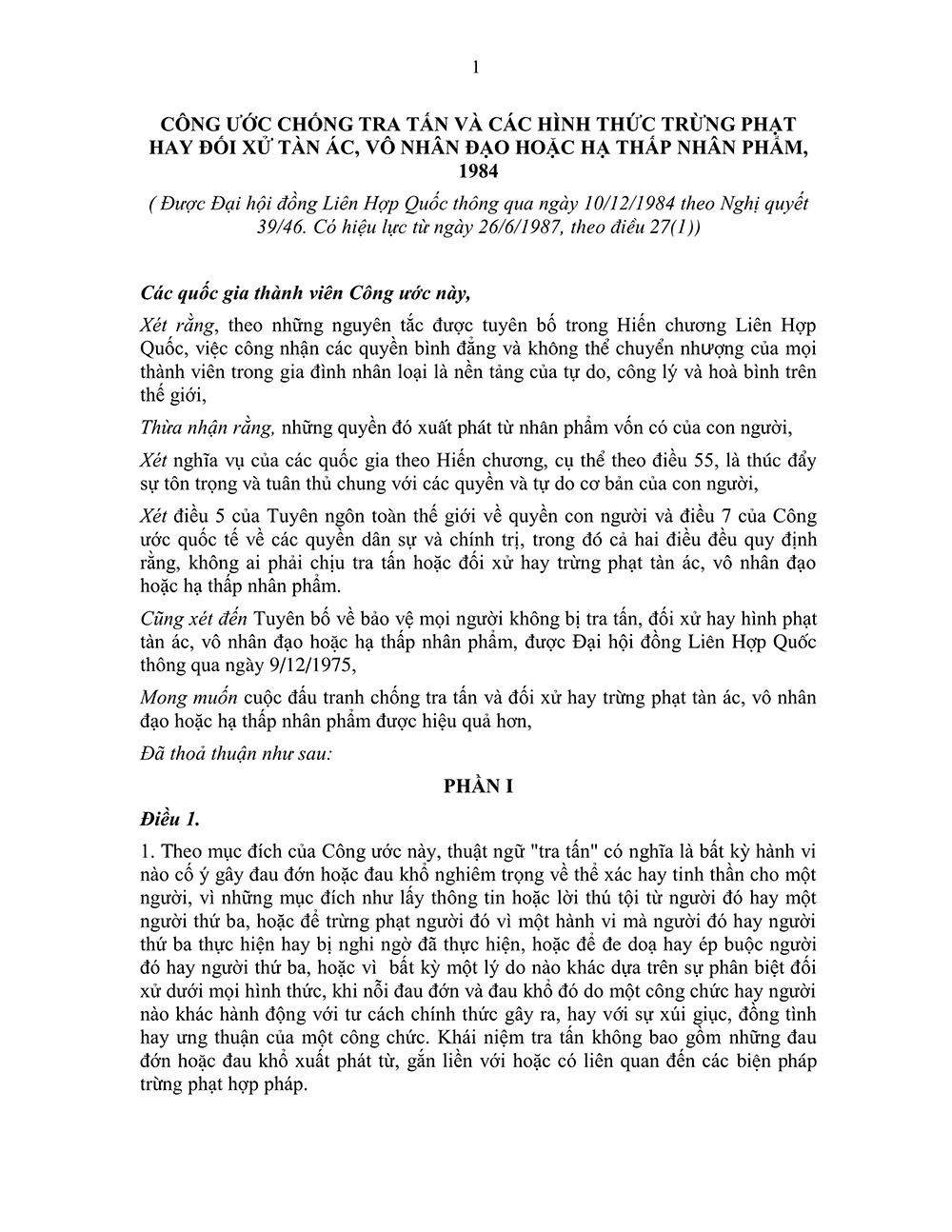 Công ước của LHQ về chống tra tấn và các hình thức đối xử hoặc trừng phạt tàn bạo, vô nhân đạo hoặc hạ nhục con người được Đại hội đồng LHQ thông qua bằng Nghị quyết số 39/46 ngày 10/12/1984 và có hiệu lực từ ngày 26/6/1987) là một trong những điều ước quốc tế đa phương quan trọng về quyền con người.