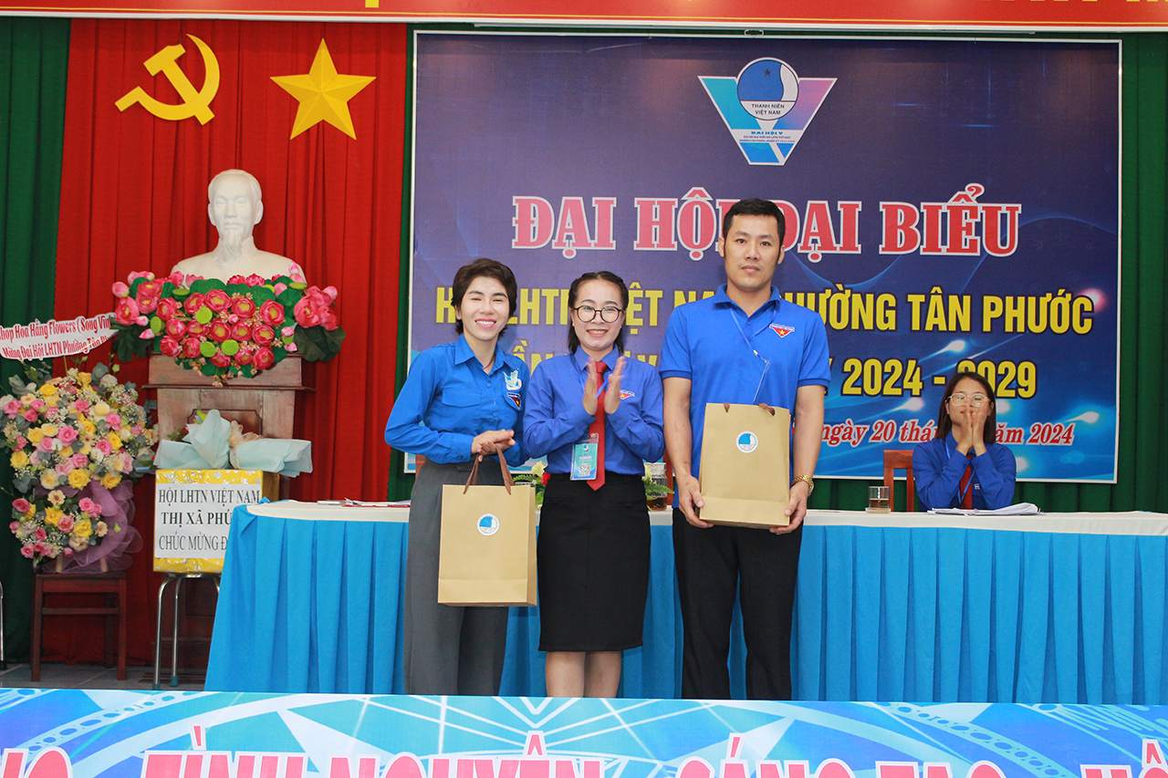 Ngày 20/4/2024, Hội liên hiệp thanh niên Việt Nam phường Tân Phước long trọng tổ chức Đại Hội lần thứ V, nhiệm kỳ 2024-2029 với 60 đại biểu chính thức. Đại hội vinh dự được đón tiếp sự có mặt của quý lãnh đạo, quý đại biểu: Anh Ngô Trí Toàn – PBT Thị Đoàn, Chủ tịch Hội LHTNVN Thị xã Phú Mỹ, Chị Nguyễn Thị Hoa Tím – PBT thường trực Đảng ủy, Anh Nguyễn Phi Trường – PBT Đảng ủy, Chủ tịch UBND phường, Anh Phạm Văn Bình – Chủ tịch UBMTTQVN phường, Anh Trần Sơn Thạch – Bí thư Đoàn phường và sự tham dự của các ban ngành, đoàn thể phường, Các anh chị UBH các xã, phường; Các anh chị là nguyên Chủ tịch, PCT UB Hội phường qua các thời kỳ đơn vị kết nghĩa cùng 60 đại biểu chính thức đại diện cho hội viên,thanh niên trên địa bàn phường.