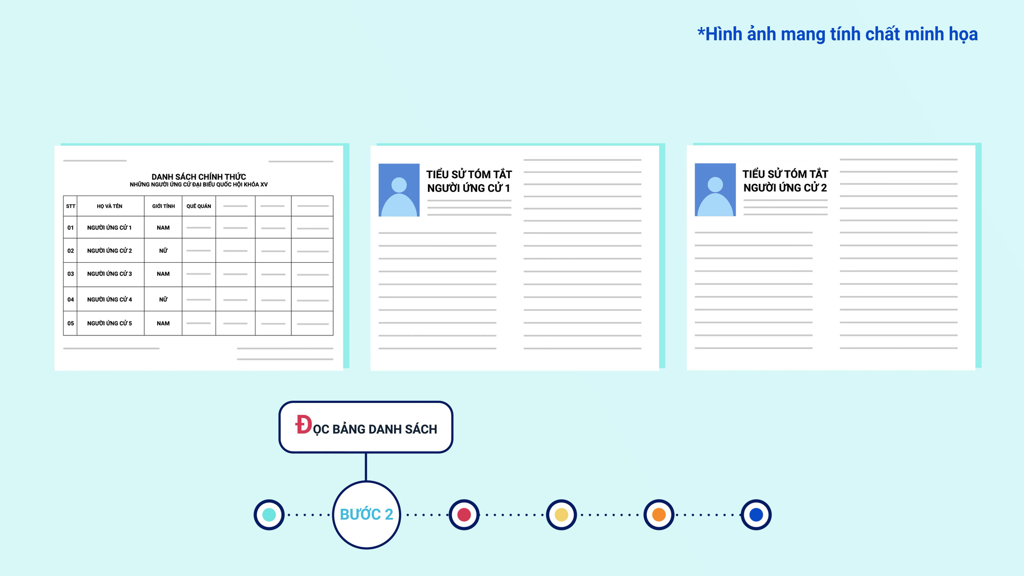 Bước 2: Đọc bảng danh sách tiểu sử người ứng cử, chương trình hành động được niêm yết trong khu vực bỏ phiếu để tìm hiểu kỹ thông tin về các ứng cử viên.