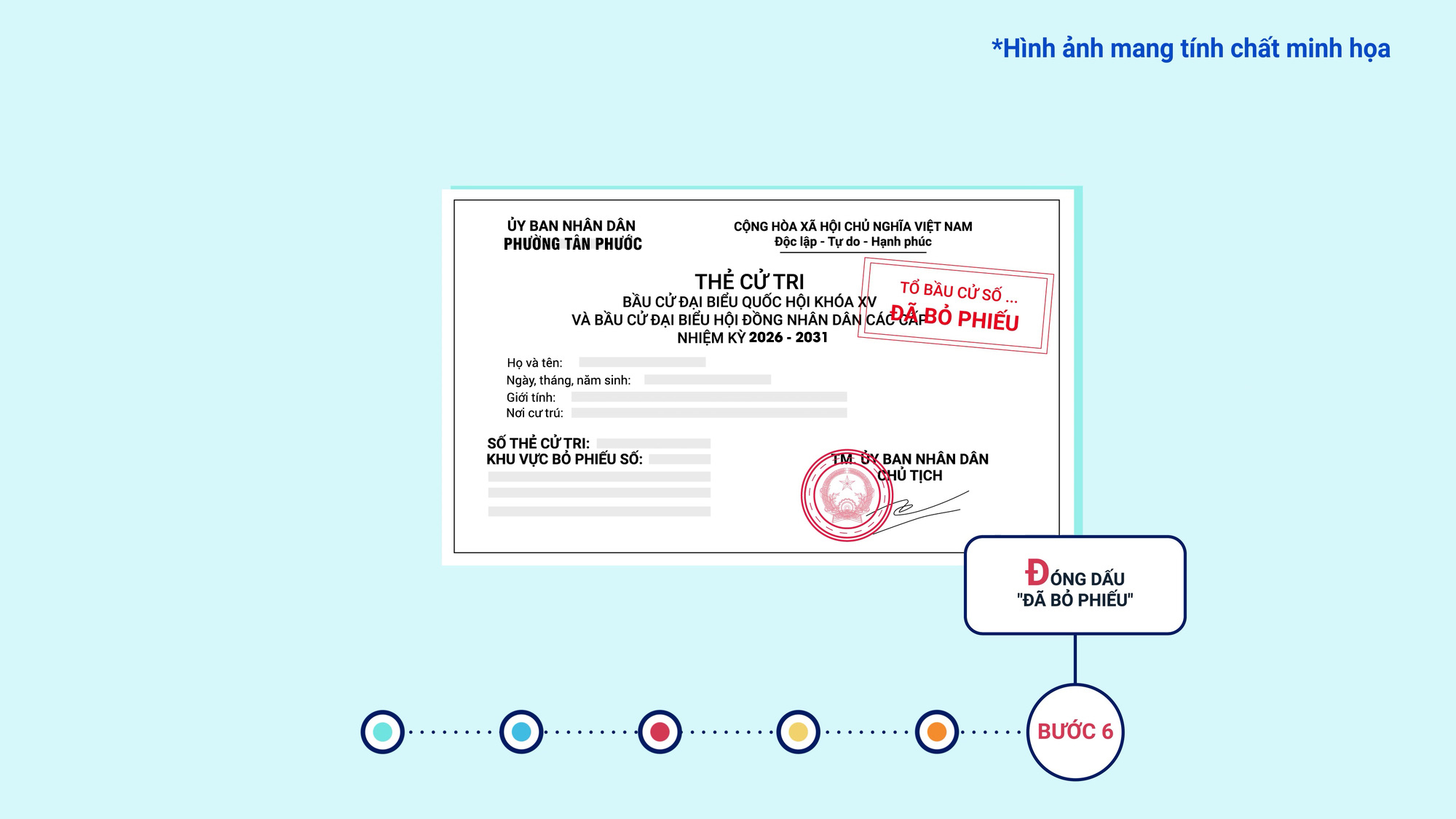 Bước 6: Đóng dấu “Đã bỏ phiếu” do Tổ bầu cử đóng vào Thẻ cử tri.