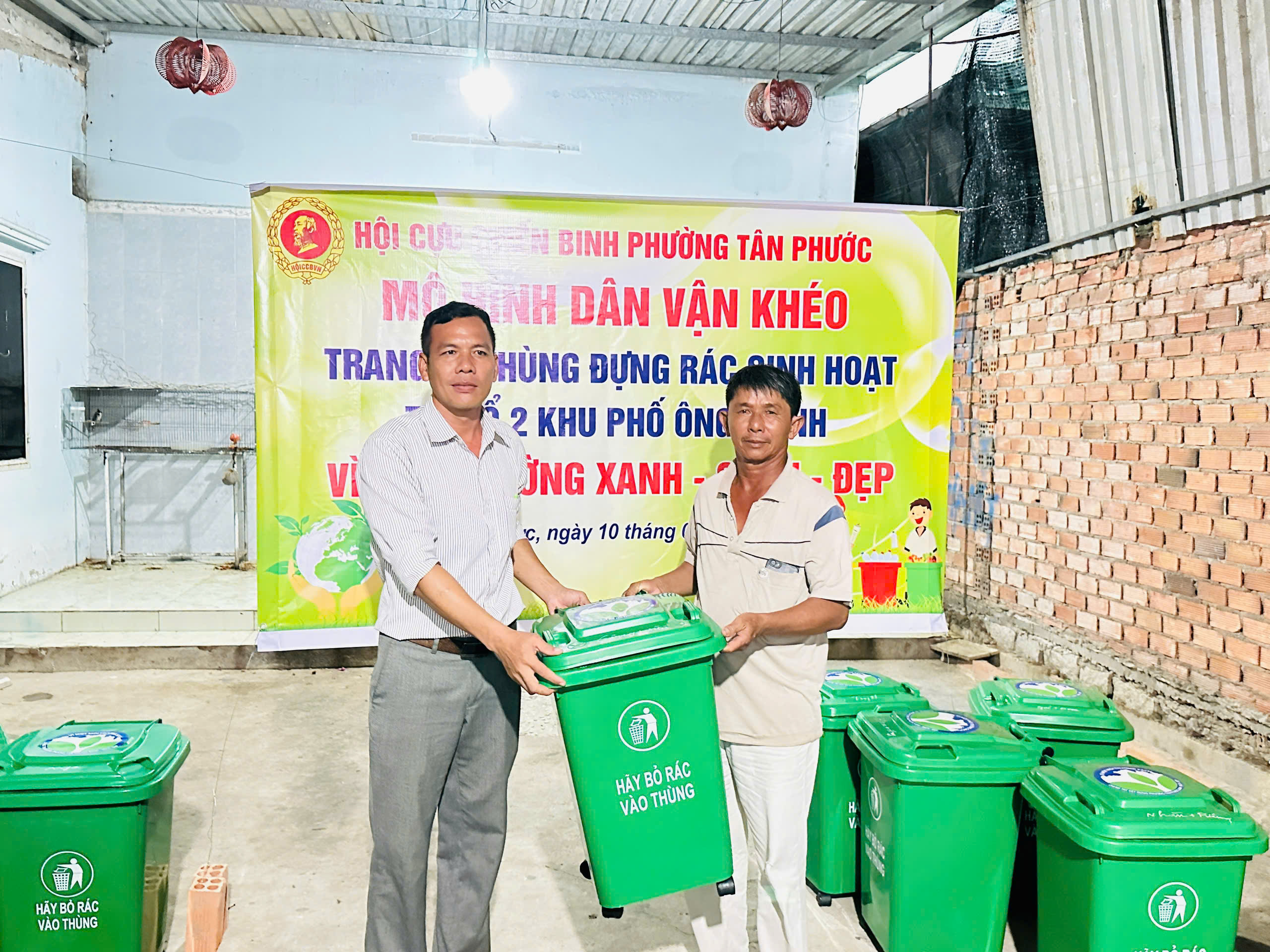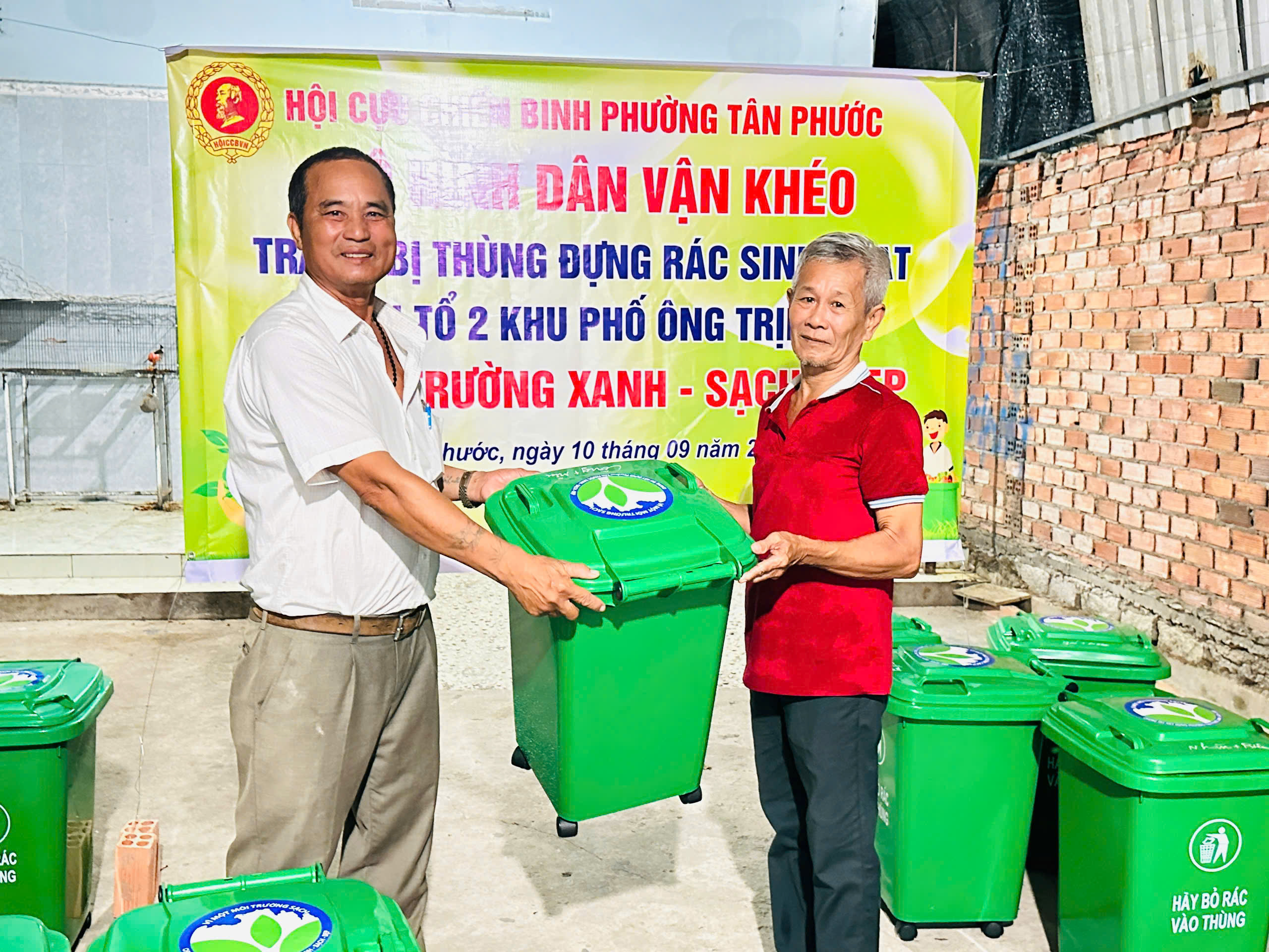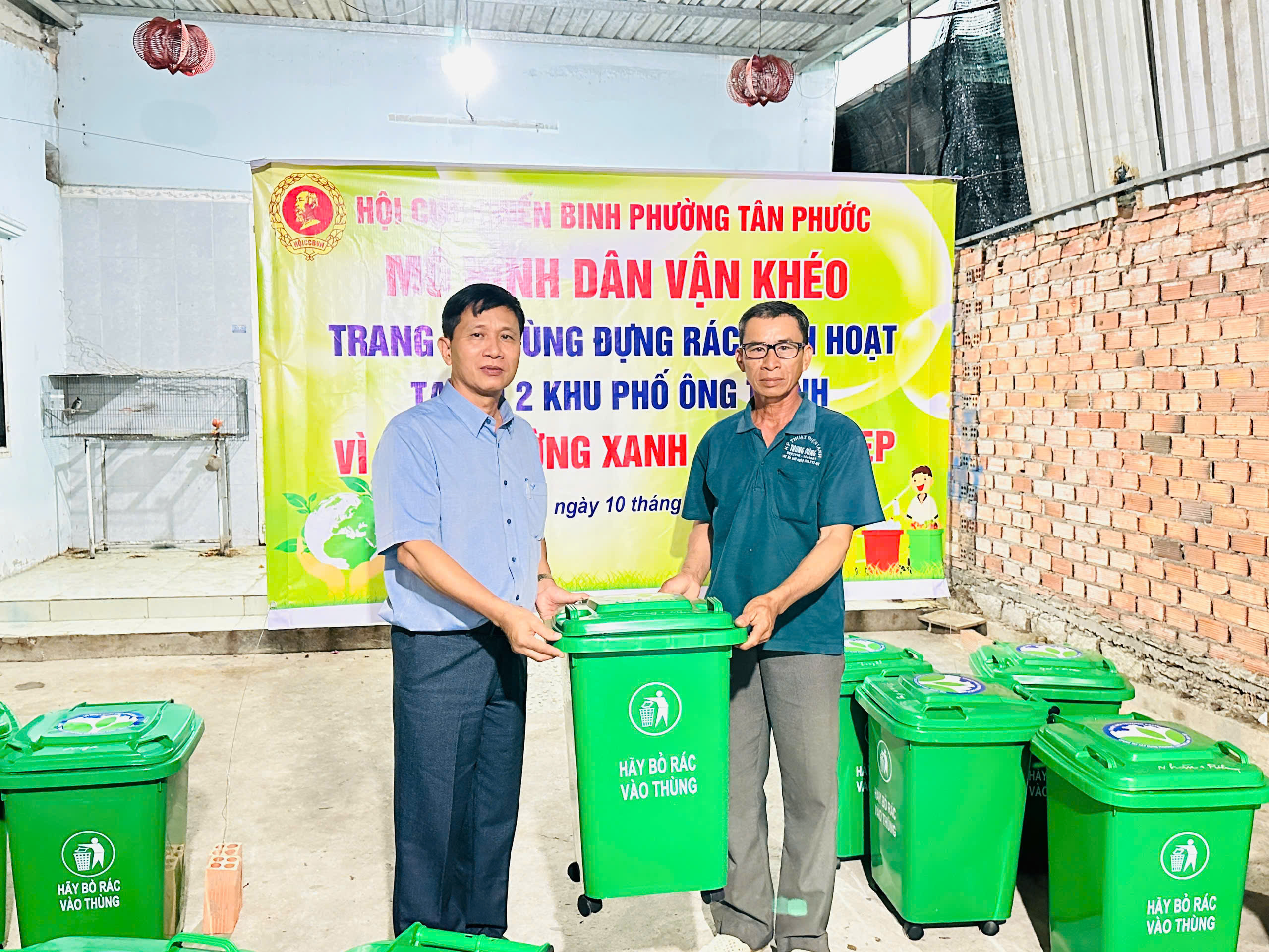 16 thùng rác được trao trị giá 195.000 nghìn đồng/thùng, kinh phí mua thùng rác do Hội cựu chiến binh phường hỗ trợ 50% và các hộ dân đóng góp 50%.