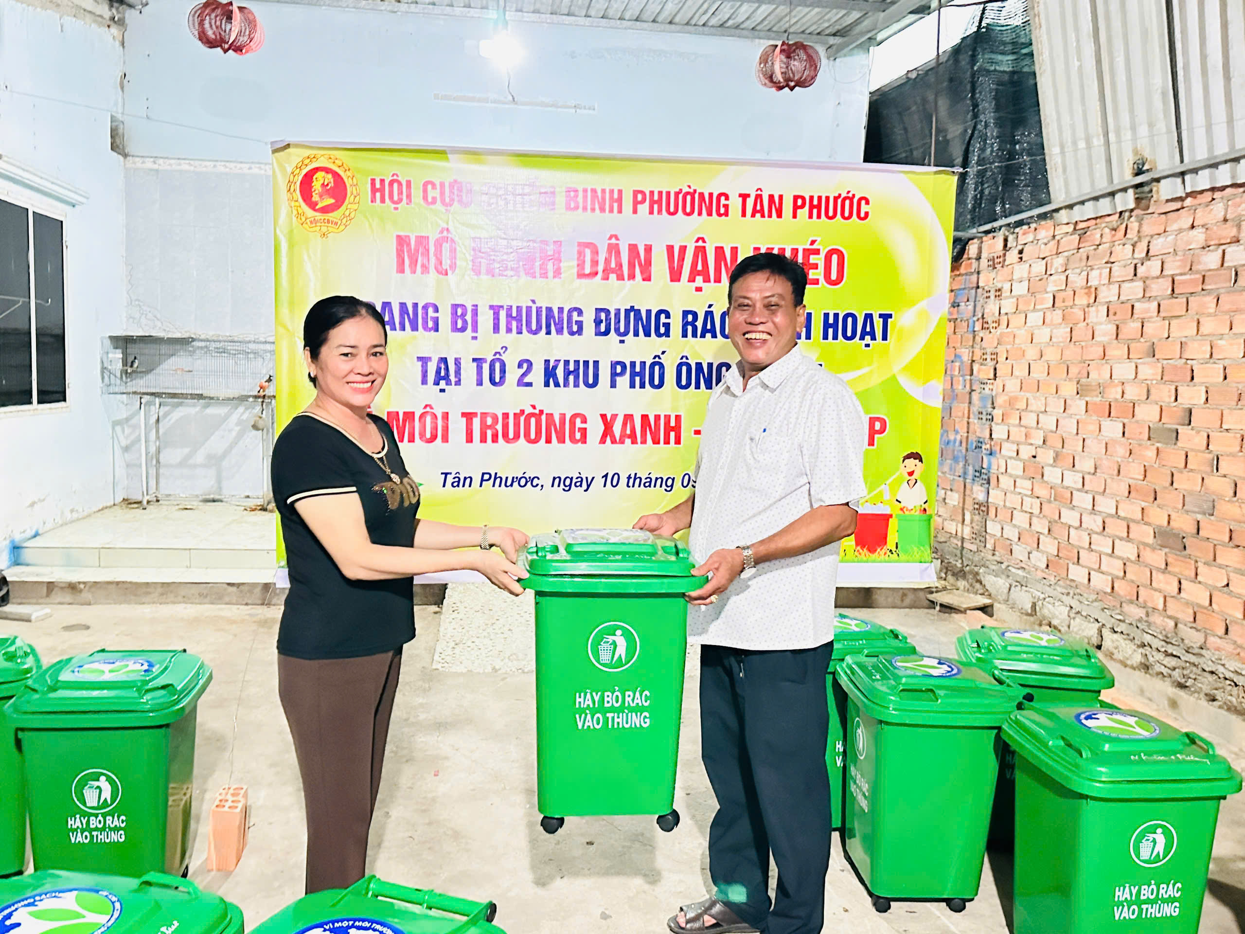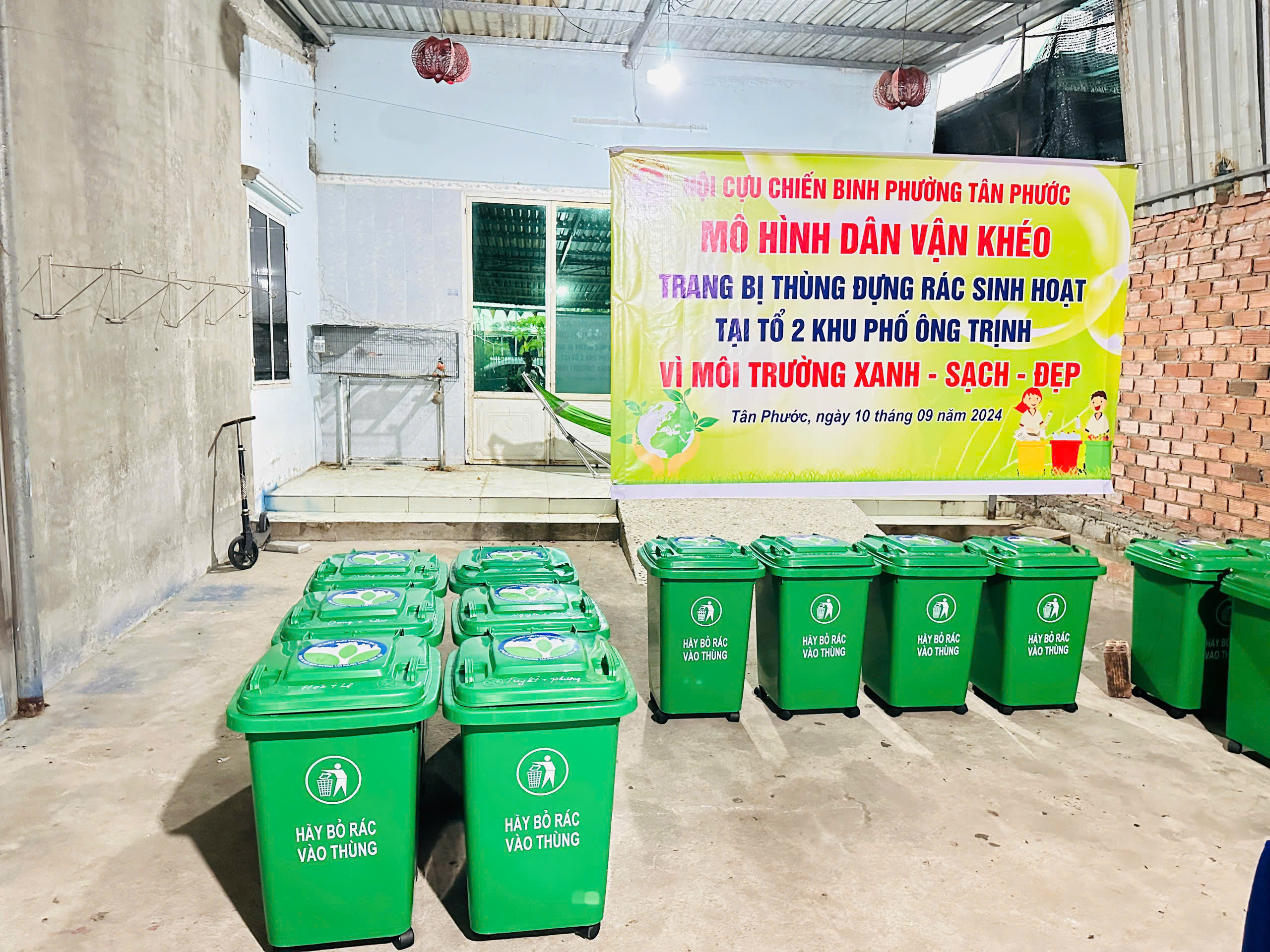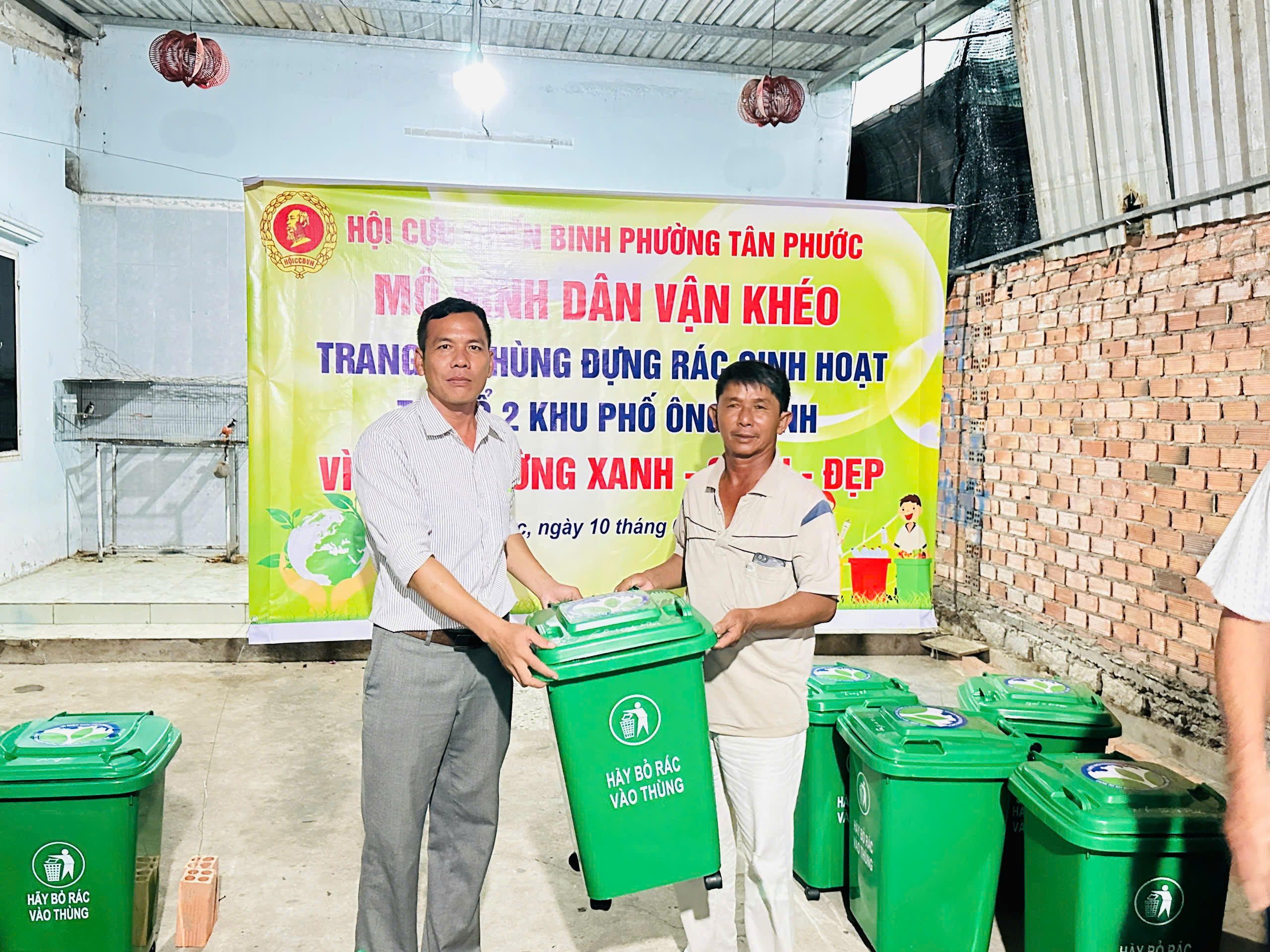 16 thùng rác được trao trị giá 195.000 nghìn đồng/thùng, kinh phí mua thùng rác do Hội cựu chiến binh phường hỗ trợ 50% và các hộ dân đóng góp 50%.