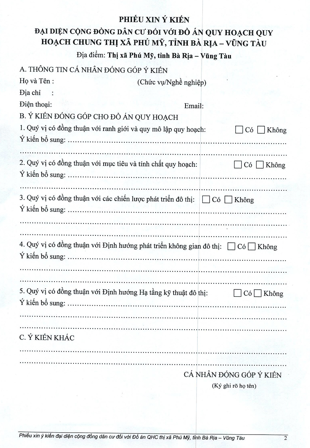 Lấy ý kiến đóng góp của cộng đồng dân cư đối với Đồ án Quy hoạch chung thị xã Phú Mỹ, tỉnh Bà Rịa – Vũng Tàu