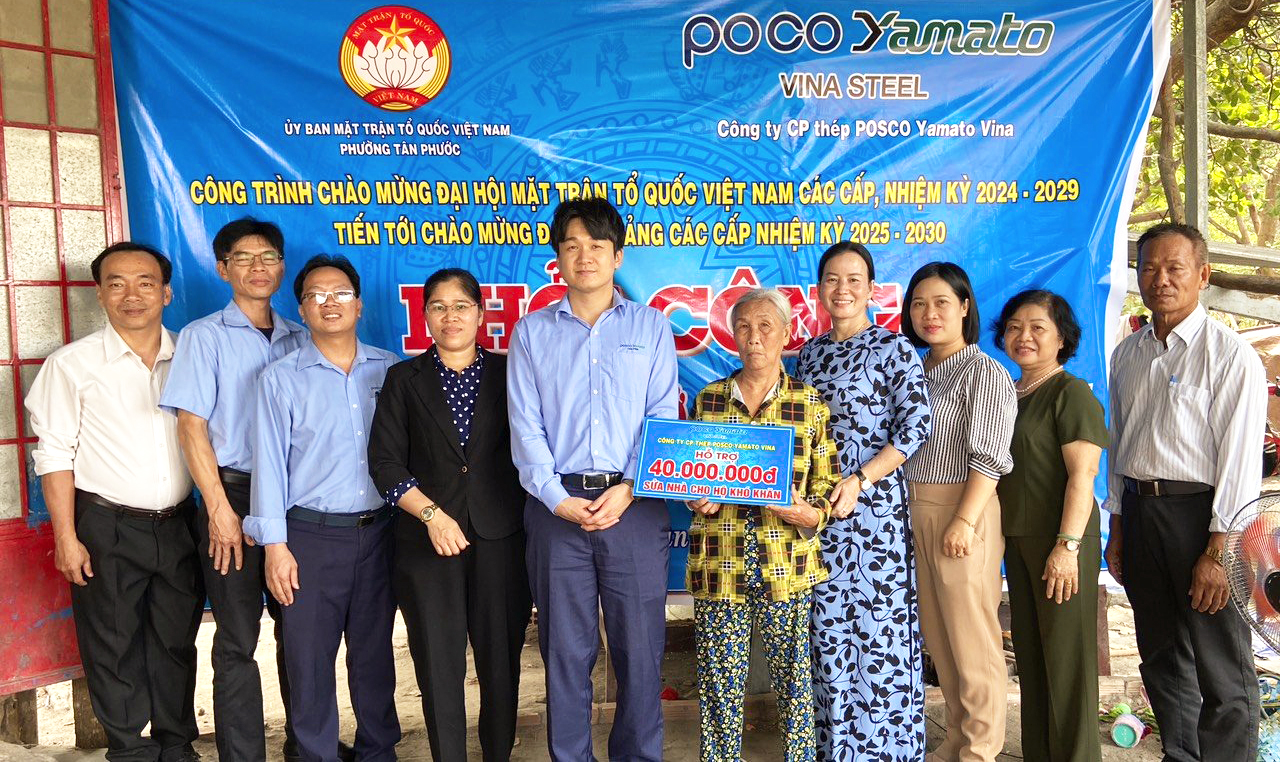 Thực hiện Cuộc vận động “Toàn dân đoàn kết xây dựng nông thôn mới, đô thị văn minh” và chương trình giảm nghèo bền vững năm 2024. Sáng ngày 04/4/2024 Phường Tân Phước tổ chức lễ khởi công nâng cấp, sửa chữa nhà ở cho hộ Bà Nguyễn Thị Hoa, Tổ 01, khu phố Phước Lộc do Công ty CP Thép POSCO Yamato Vina tài trợ, số tiển 40 triệu đồng số còn lại Phường vận động các mạnh thường quân và gia đình phụ thêm.