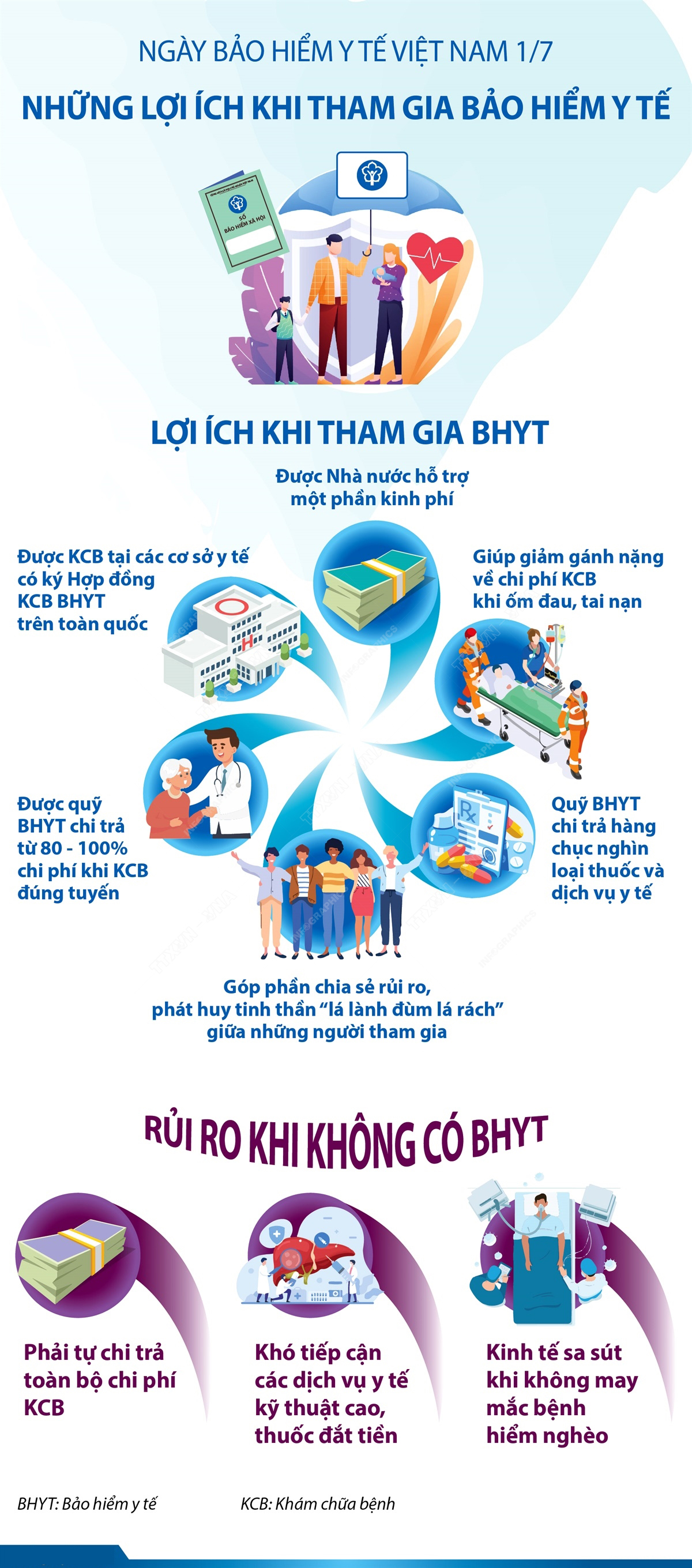 Ngày 1/7 hằng năm được chọn là Ngày Bảo hiểm y tế (BHYT) Việt Nam nhằm khuyến khích, vận động nhân dân tham gia BHYT, tiến tới BHYT toàn dân. BHYT là loại hình bảo hiểm trong chăm sóc sức khỏe do Nhà nước tổ chức, thực hiện không vì mục đích lợi nhuận. BHYT đã giúp nhiều người vượt qua khó khăn khi chẳng may ốm đau, tai nạn. Tham gia BHYT được xem là một hình thức tiết kiệm “đóng góp khi lành, để dành khi ốm”, nhằm giảm bớt gánh nặng về kinh tế khi không may bị ốm đau, bệnh tật, kể cả những bệnh hiểm nghèo, chi phí lớn…