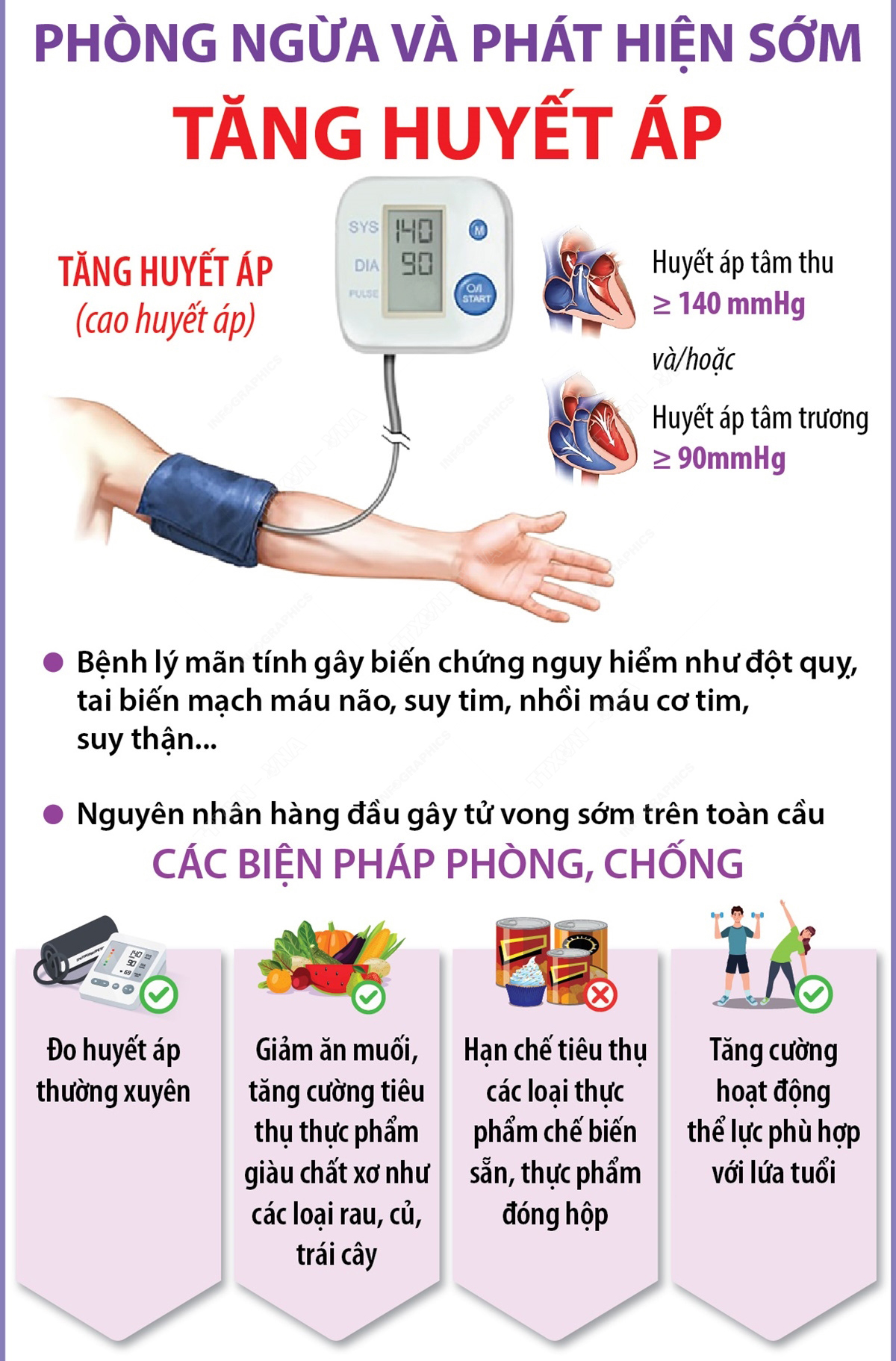 Tăng huyết áp (cao huyết áp) là tình trạng áp lực máu lên thành động mạch tăng cao hơn so với bình thường. Đây là bệnh được định nghĩa khi huyết áp tâm thu ≥ 140 mmHg và hoặc huyết áp tâm trương ≥ 90mmHg. Tăng huyết áp là bệnh lý mãn tính gây các biến chứng nguy hiểm như đột quỵ, tai biến mạch máu não, suy tim, nhồi máu cơ tim, suy thận,xuất huyết võng mạc… và là nguyên nhân hàng đầu gây ra tử vong sớm trên toàn cầu. Ở giai đoạn đầu, bệnh thường không có triệu chứng do đó nhiều người không được phát hiện và chẩn đoán kịp thời.
