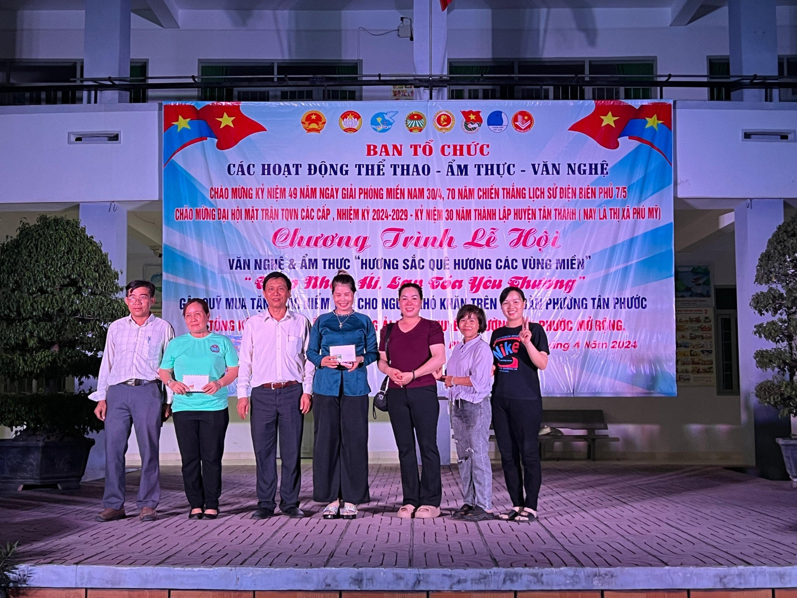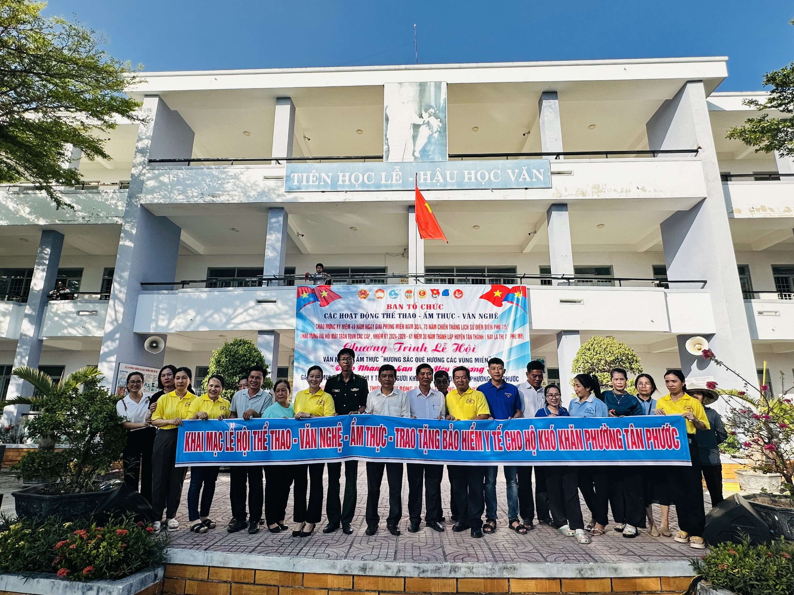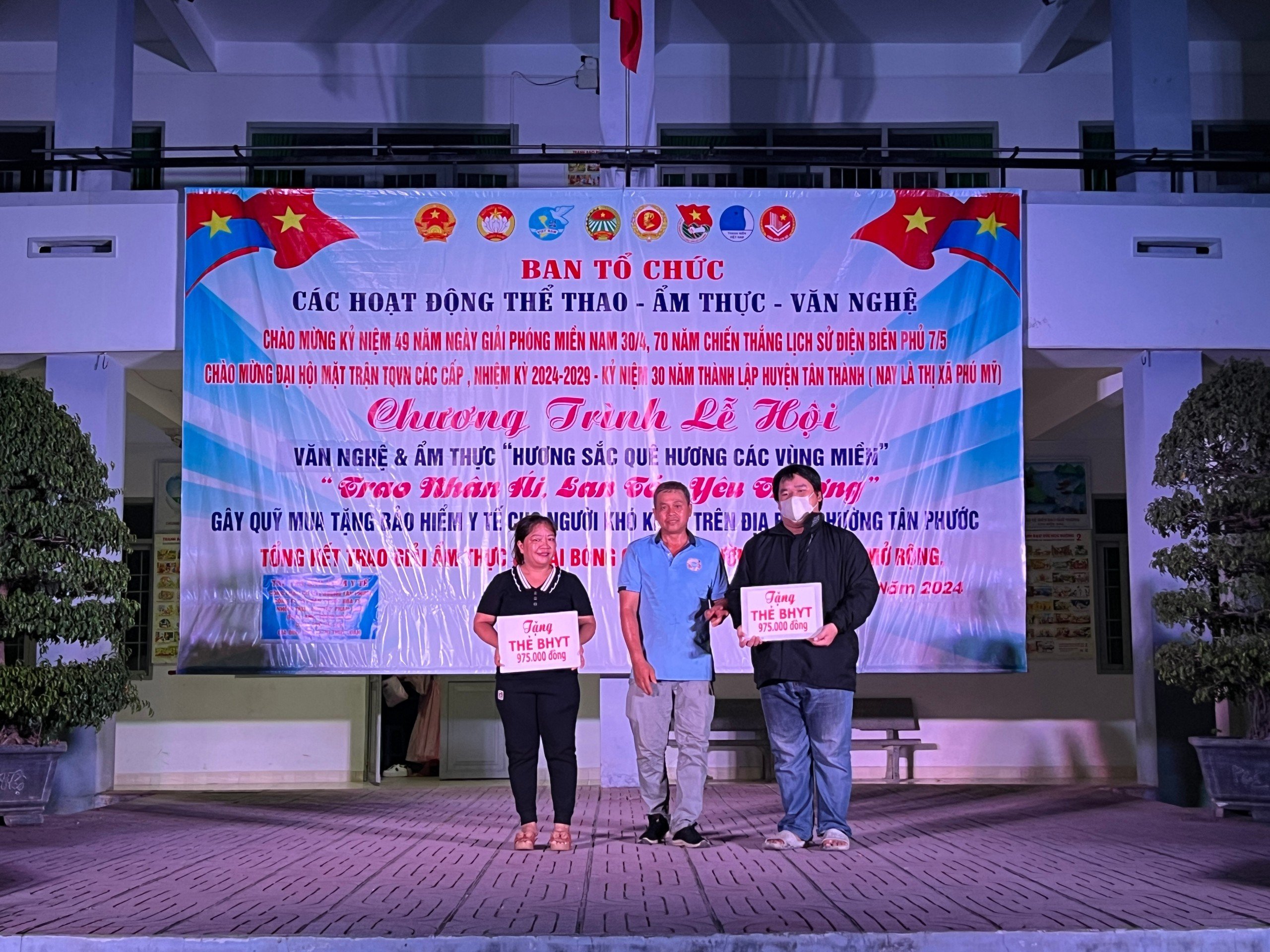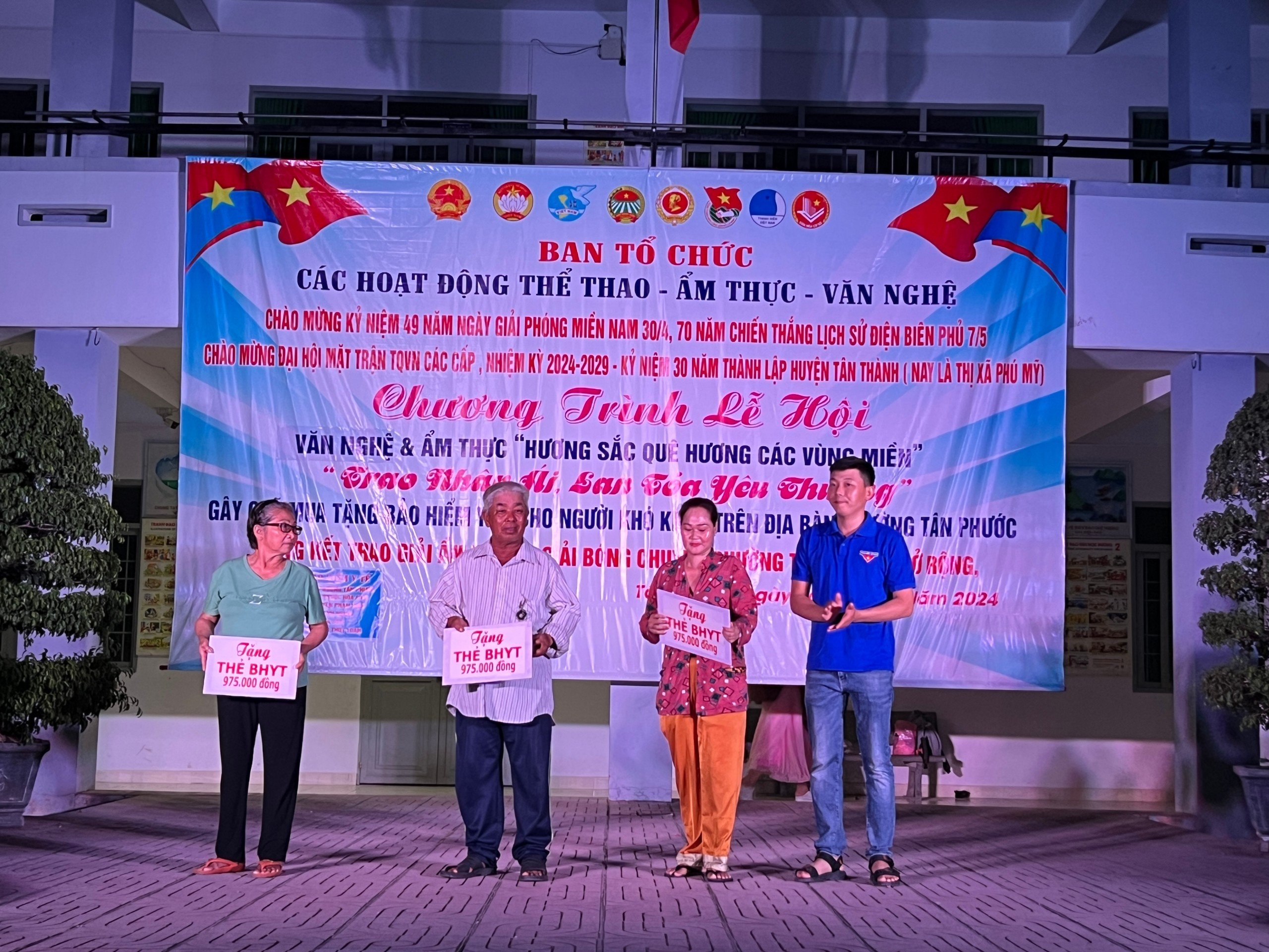 Đặc biệt chiều và tối ngày 26/4/2024 Phường Tân Phước đã tổ chức Lễ hội Văn hoá ẩm thực Hương sắc quê hương các vùng miền quy tụ 20 gian hàng của các đơn vị phục vụ trên 4.000 phiếu ẩm thực (trị giá 15.000đ/phiếu) nhằm gây quỹ mua tặng Bảo hiểm y tế cho các gia đình khó khăn, qua lễ hội ẩm thực ban tổ chức đã vận động và trao tặng trên 30 thẻ bảo hiểm y tế trị giá gần 30 triệu đồng cho các hộ gia đình khó khăn, bệnh nặng trên địa bàn phường.