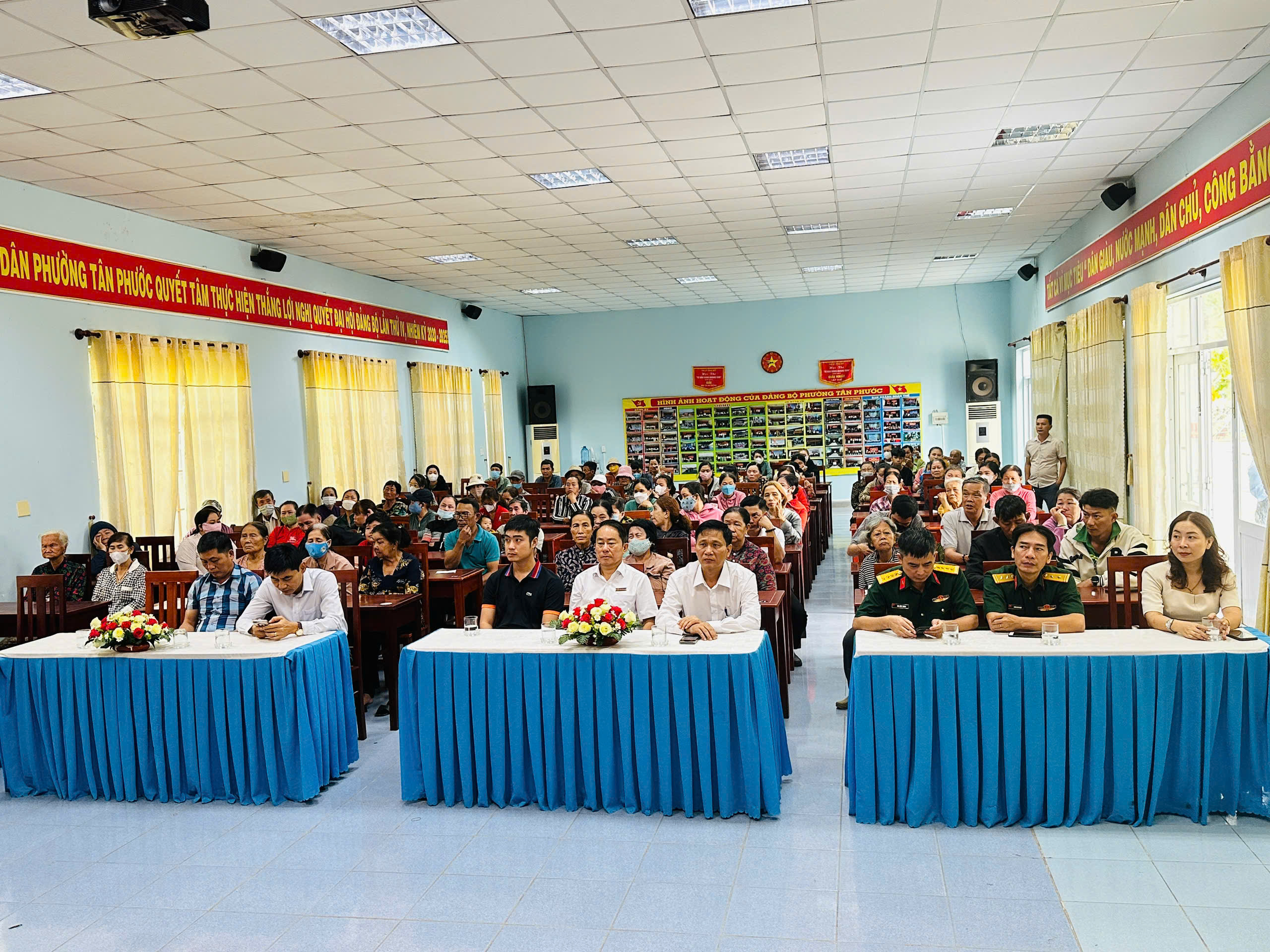 Tiếp tục chương trình “Trao yêu thương – Sẻ chia Tết ấm” của phường Tân Phước, trong ngày 23/01/2025, phường Tân Phước đã trao tặng 140 suất quà Tết do mạnh thường quân hỗ trợ cho gia đình chính sách khó khăn, người nghèo, gia đình khó khăn, khuyết tật, bảo trợ xã hội khó khăn; lao động ở trọ mất việc, không có điều kiện về quê đón Tết nhân dịp Tết nguyên đán Ất Tỵ 2025.