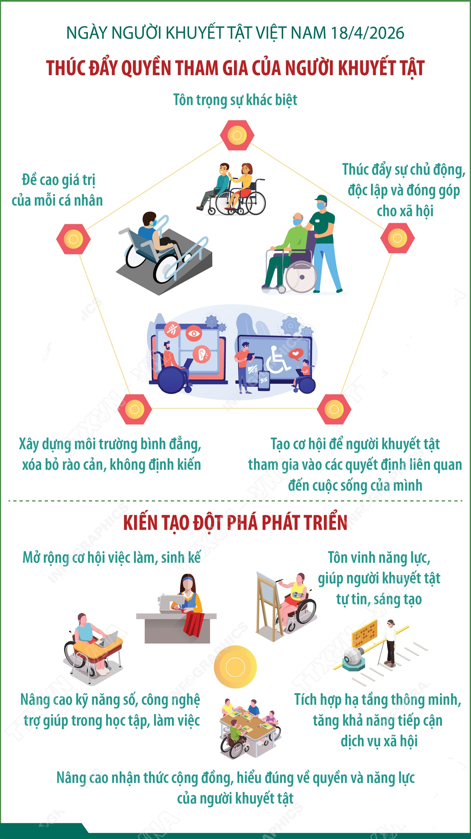 Ngày 18/4 hằng năm được chọn là Ngày Người khuyết tật Việt Nam. Ngày người khuyết tật Việt Nam năm 2026 có chủ đề “Thúc đẩy quyền tham gia của người khuyết tật – Kiến tạo đột phá phát triển”. Chủ đề năm nay không chỉ mang ý nghĩa kêu gọi, mà còn là định hướng hành động, nhấn mạnh vai trò chủ thể của người khuyết tật trong quá trình phát triển. Không chỉ là đối tượng thụ hưởng chính sách, người khuyết tật có khả năng tham gia, đóng góp và sáng tạo khi được tạo điều kiện phù hợp. Khi người khuyết tật được trao cơ hội bình đẳng, được tiếp cận các nguồn lực và được lắng nghe, họ sẽ trở thành một lực lượng quan trọng góp phần thúc đẩy tăng trưởng và đổi mới sáng tạo.
