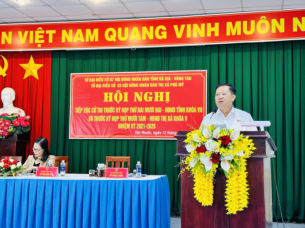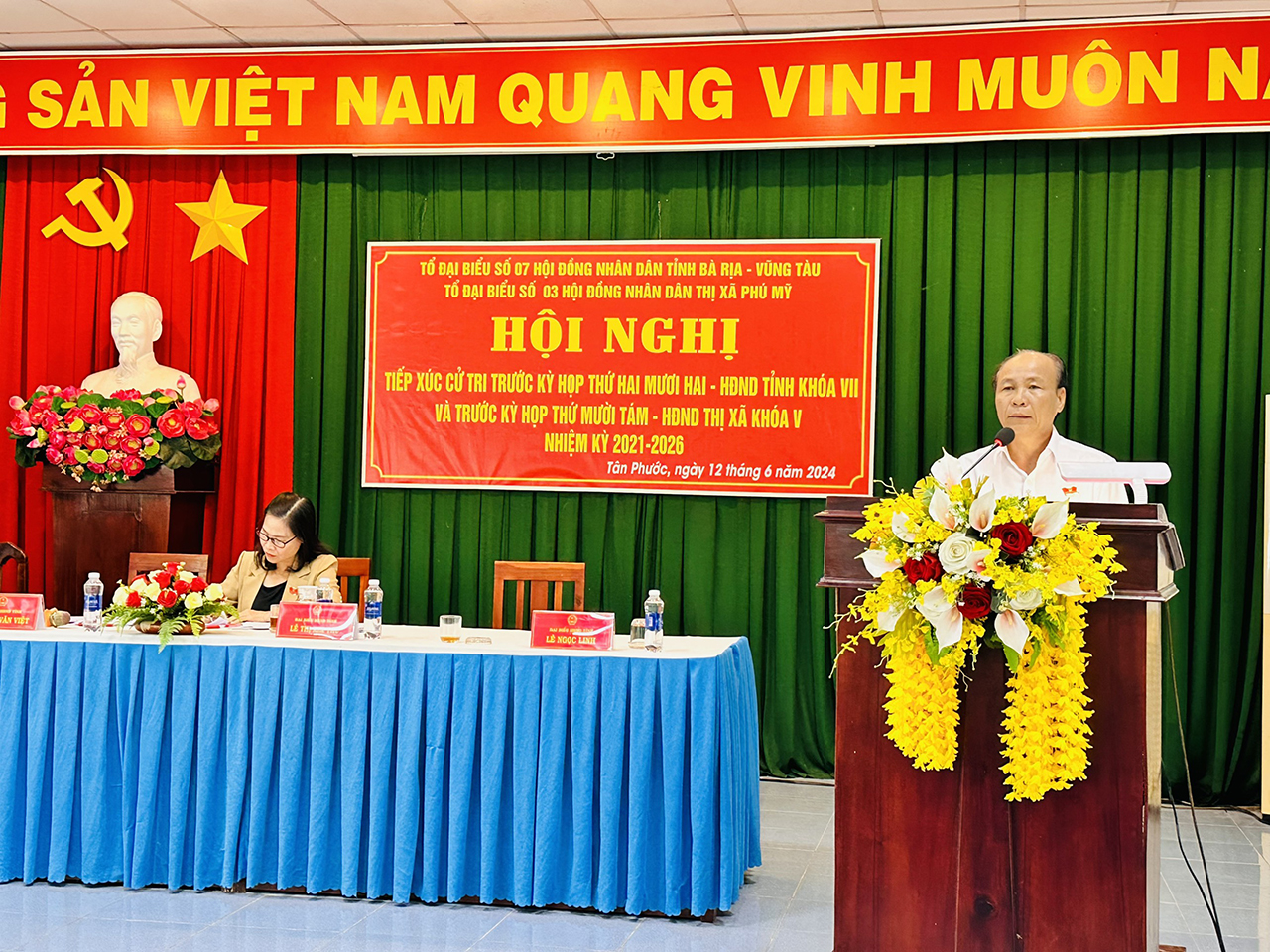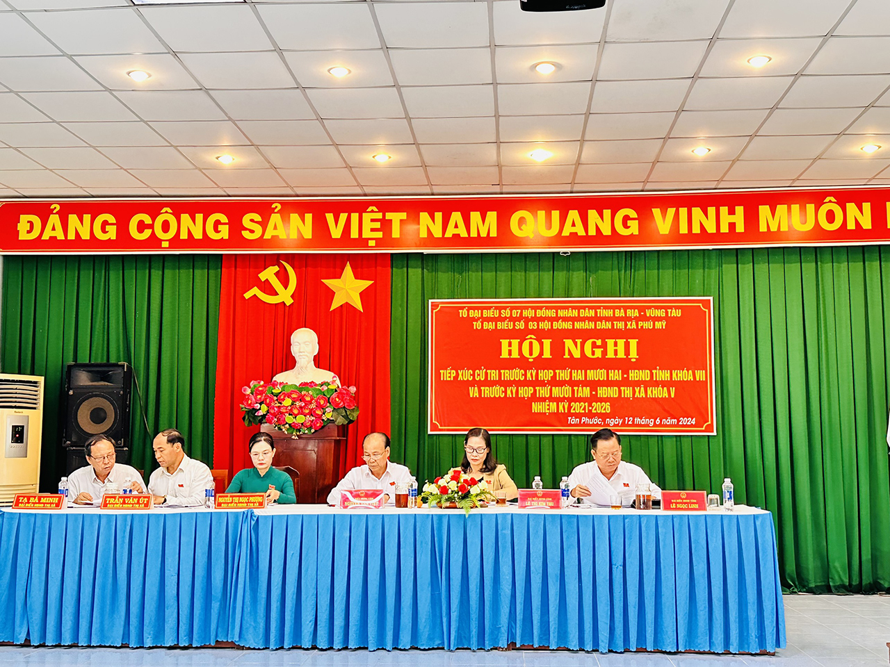 Tổ đại biểu số 7 HĐND tỉnh gồm các đại biểu: Ông Nguyễn Văn Việt – Tỉnh uỷ viên, Bí thư Thị uỷ Phú Mỹ; Ông Lê Ngọc Linh – Tỉnh uỷ viên, Giám đốc Sở Kế hoạch Đầu tư; Bà Lê Thị Kim Thu – Tỉnh uỷ viên, Chủ tịch Hội LHPN tỉnh và Tổ đại biểu số 3 HĐND thị xã Phú Mỹ gồm các đại biểu: Bà Nguyễn Thị Ngọc Phượng – UV.BTV, Trưởng Ban Tổ chức Thị uỷ; Ông Trần Văn Út – Thị uỷ viên, Bí thư Đảng uỷ phường Tân Phước; Ông Tạ Bá Minh – Phó Trưởng Ban Pháp chế HĐND thị xã đã tiếp xúc cử tri trước Kỳ họp thường lệ giữa năm 2024.