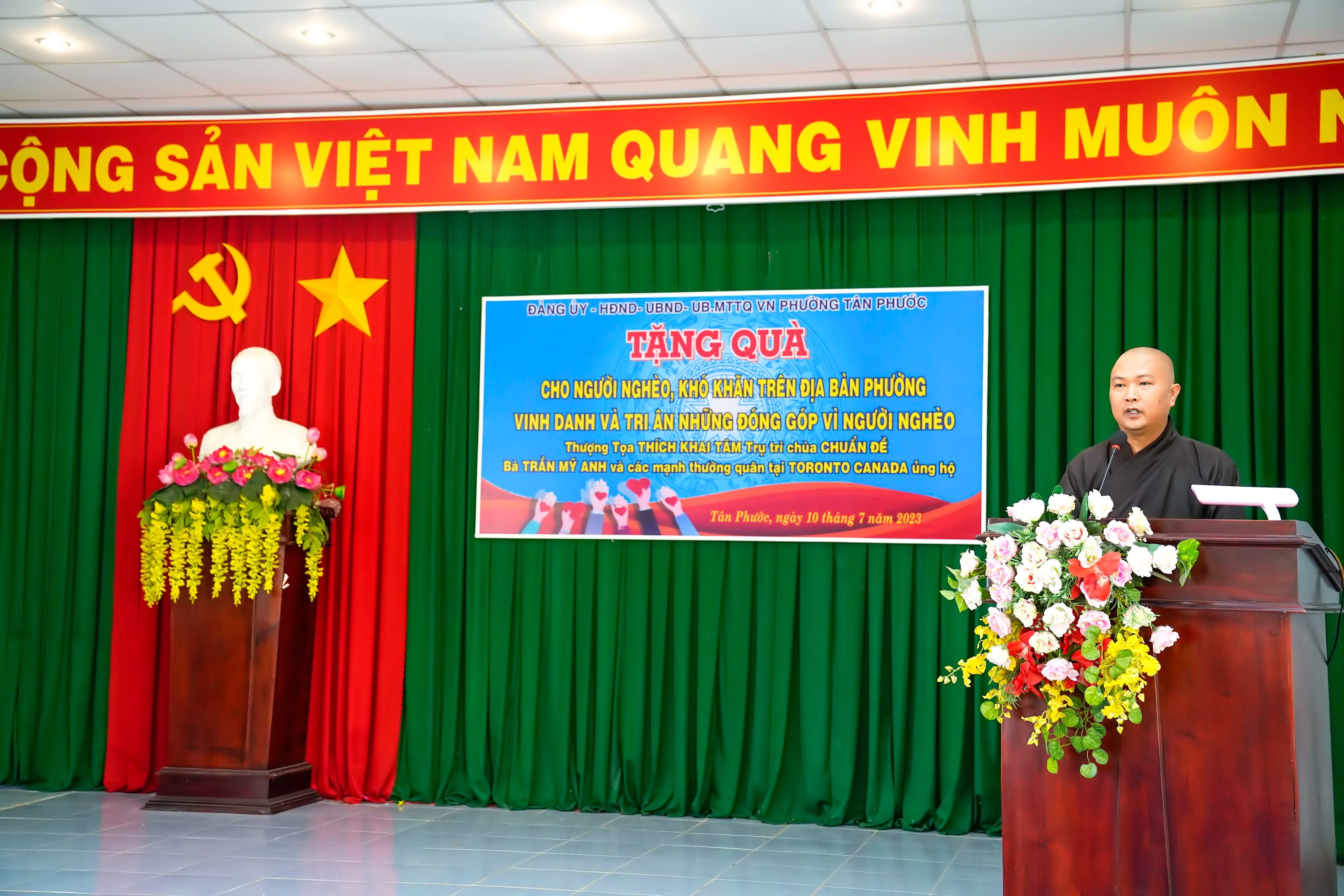 Các hộ dân được nhận một phần quà trị giá 250.000đ, trong đó gồm 10kg gạo thơm và 01 thùng mỳ ăn liền, tổng giá trị quà phát là 125 triệu đồng do Mặt trận tổ quốc phường phối hợp Chùa chuẩn đề vận động bà Trần Mỹ Anh và các mạnh thường quân là Việt kiều tại Toronto – Canada ủng hộ.